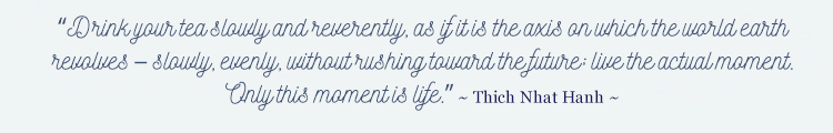 These may be as simple as making a cup of tea or coffee in a beautiful mug or cup, and enjoying it mindfully in a special spot – being fully present to the taste, smell, feel and the whole experience. Or it may be going for a walk with a friend, enjoying each other’s company and noticing the light dancing between the trees. Or it may be buying or picking flowers every week, just for you, and really enjoying them every time you see them. Or it may be walking outside, barefoot on the grass, fully aware of the feel of the grass and the earth beneath your feet, and the sights and smells around you. Or it may be lighting candles at a mealtime. Or it may be reading your book in a delicious bath. The list is endless. It’s really not about “doing” anything particular. It’s more about receiving the joy and pleasure that comes from taking time to restore ourselves.